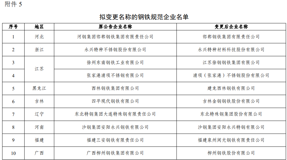 根據(jù)《鋼鐵行業(yè)規(guī)范條件(2015年修訂)》和《鋼鐵行業(yè)規(guī)范企業(yè)管理辦法》,工業(yè)和信息化部持續(xù)開展鋼鐵規(guī)范企業(yè)動態(tài)調(diào)整工作。經(jīng)企業(yè)自查、地方工業(yè)主管部門初審、我部組織專家核實,其中,13家企業(yè)符合《鋼鐵行業(yè)規(guī)范條件》,擬列入規(guī)范企業(yè)名單;7家企業(yè)存在未通過地方初審、冶煉設備擬全部關(guān)停退出等情形,擬撤銷規(guī)范公告;13家企業(yè)存在環(huán)保、安全等問題,擬責令整改;12家企業(yè)冶煉裝備變化、10家企業(yè)名稱變化,擬予以變更。