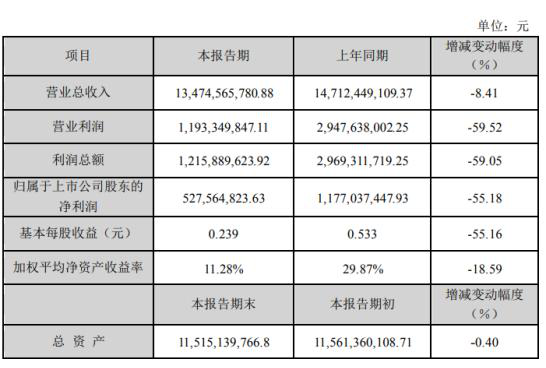 據(jù)了解,2019年度,公司實(shí)現(xiàn)營(yíng)業(yè)收入134.75億元,較上年同期下降8.41%;利潤(rùn)總額12.16億元,較上年同期下降59.05%;歸屬于上市公司股東的凈利潤(rùn)5.28億元,較上年同期下降55.18%。截止2019年12月31日,公司總資產(chǎn)115.15億元,較年初下降0.40%;歸屬于上市公司股東的所有者權(quán)益49.67億元,較年初增長(zhǎng)10.71%。