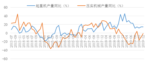 圖3  起重機(jī)和壓實(shí)機(jī)械產(chǎn)量增速走勢(shì)