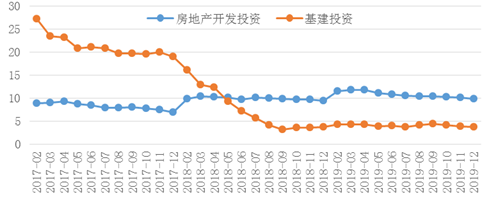圖4  房地產(chǎn)開(kāi)發(fā)投資和基建投資增速趨勢(shì)