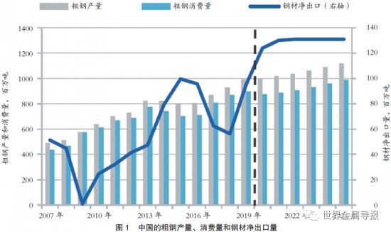 經(jīng)過多年的強勁增長后,預(yù)計2020年中國粗鋼需求量將下降1%,不過在展望期內(nèi),預(yù)計中國需求將恢復(fù)增長,但增速會有所放緩。中國的粗鋼產(chǎn)量、消費量和鋼材凈出口量統(tǒng)計及預(yù)測如圖1所示。