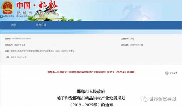 關(guān)于《邯鄲市精品鋼材產(chǎn)業(yè)發(fā)展規(guī)劃(2019-2025)》政策解讀