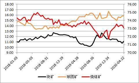 4月各省市生產(chǎn)活動(dòng)基本恢復(fù)到正常水平,礦山開(kāi)工率由60.97%提升至64.29%,與去年同期產(chǎn)量水平基本持平;截止4月26日,國(guó)內(nèi)70家樣本礦山日均鐵精粉產(chǎn)量為40.56萬(wàn)噸,較3月下旬上漲2.1萬(wàn)噸。同時(shí),隨著全國(guó)范圍的復(fù)工復(fù)產(chǎn),鐵精粉庫(kù)存持續(xù)回落,截止4月17日,國(guó)內(nèi)70家樣本礦山鐵精粉庫(kù)存為147.28萬(wàn)噸,較3月底下降9.27萬(wàn)噸,創(chuàng)逾1年新低。