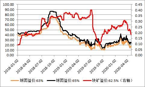 圖3:進(jìn)口球團(tuán)、塊礦溢價(jià)(單位:美元/噸)