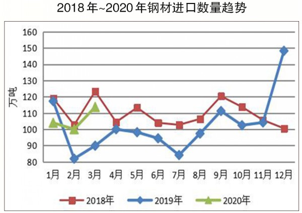 進口熱軋卷板數(shù)量成倍增長。1月~3月份,我國進口棒線材34.7萬噸,同比增長45%;進口均價為1238.1美元/噸,同比下降24.7%。 我國進口普通熱軋薄板(卷)38.8萬噸,同比增長154.3%;進口均價為515.1美元/噸,同比下降22.4%。我國進口普通冷軋薄板(卷)46.1萬噸,同比增長9.5%;進口均價為616.3美元/噸,同比下降12.2%。雖然已實施貿(mào)易救濟措施,但我國取向電工鋼進口量增長仍較快,1月~3月份累計進口11.4萬噸,同比增長38.7%。