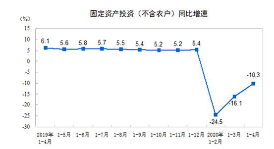 2020年1-4月全國固定資產(chǎn)投資下降10.3%