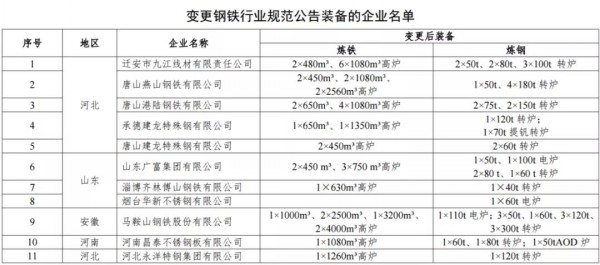 變更鋼鐵行業(yè)規(guī)范公告裝備的企業(yè)名單
