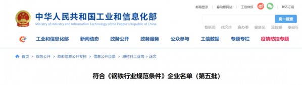 5月15日,工信部發(fā)布《符合《鋼鐵行業(yè)規(guī)范條件》企業(yè)名單(第五批)》(以下簡(jiǎn)稱“《名單》”)。