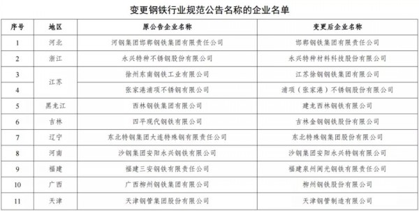 變更鋼鐵行業(yè)規(guī)范公告名稱的企業(yè)名單