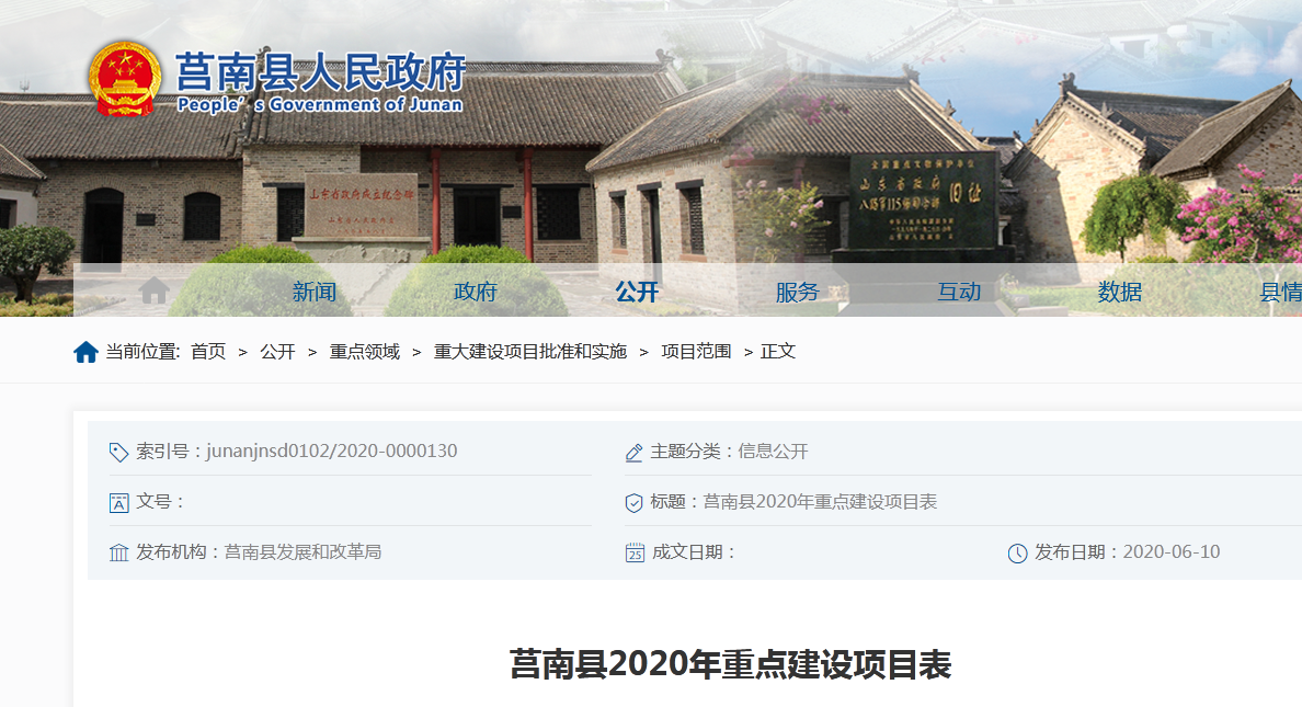 6月10日莒南縣公布2020年重點(diǎn)建設(shè)項(xiàng)目表,共42個(gè)項(xiàng)目,其中有6大鋼鐵項(xiàng)目。