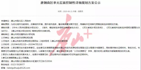 唐鋼南區(qū)單元層面控制性詳細(xì)規(guī)劃方案公示