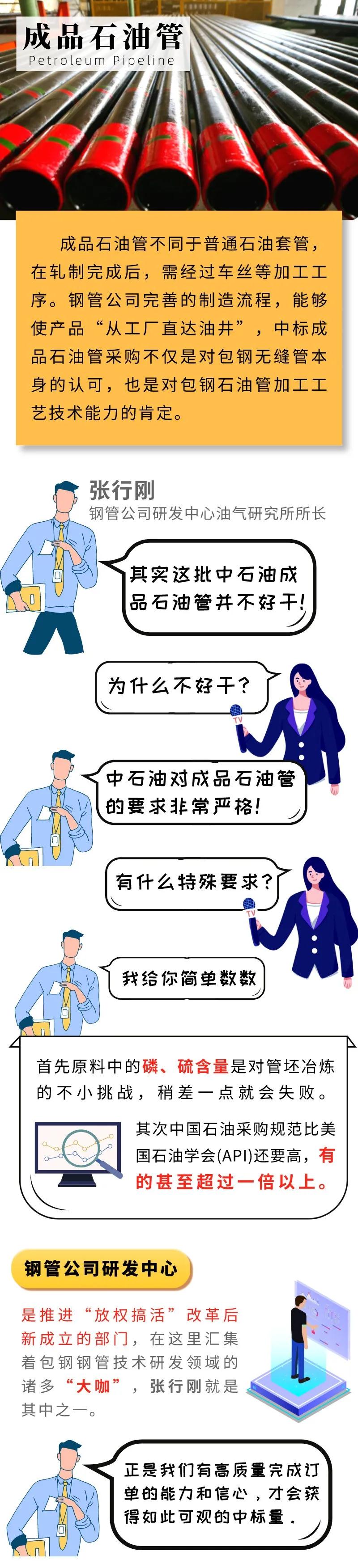 這次中標產品均為成品石油管,并新增中石油下屬油田10家,是近年來中國石油石油專用管年度招標中包鋼成品石油管取得的最好成績 。
