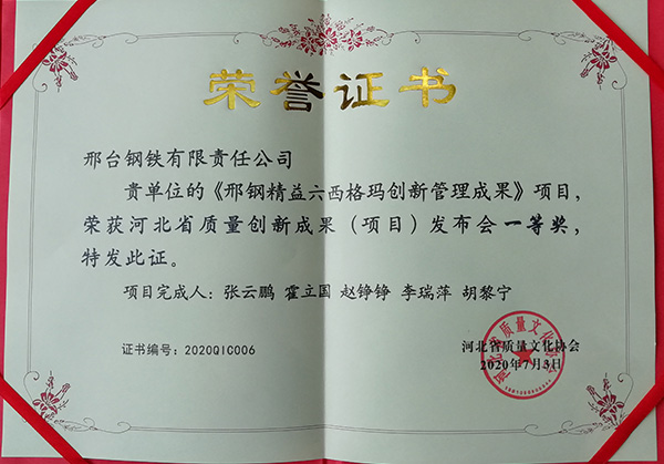 為激發(fā)萬(wàn)眾創(chuàng)新熱情,提高創(chuàng)新質(zhì)量,促進(jìn)創(chuàng)新交流,河北省質(zhì)量文化協(xié)會(huì)于2020年7 月2日至3日在石家莊召開(kāi)了河北省第三屆質(zhì)量創(chuàng)新成果(項(xiàng)目)發(fā)布會(huì)。經(jīng)申報(bào)材料評(píng)審,大會(huì)發(fā)表,專家評(píng)審,邢臺(tái)鋼鐵有限責(zé)任公司申報(bào)的4項(xiàng)質(zhì)量創(chuàng)新成果(項(xiàng)目)全部獲獎(jiǎng)。