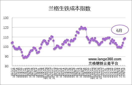 核心提示:2020年6月份蘭格生鐵成本指數(shù)為105.3點,較上月上升5.2%(詳見圖1)。同期,蘭格鋼鐵綜合價格指數(shù)呈震蕩小幅上行局面,6月末蘭格