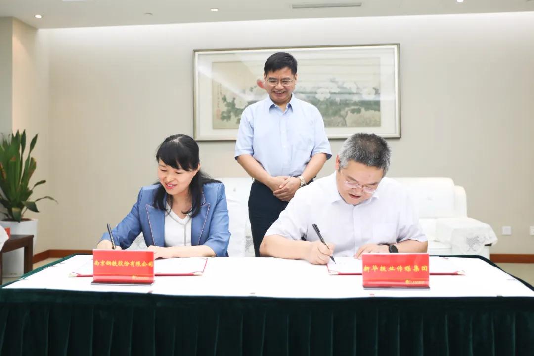南鋼黨委副書記王芳和新華日報副總編輯黃建偉簽署協(xié)議