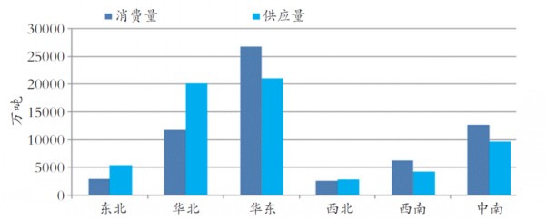 圖1 2019年各區(qū)域鋼材供應(yīng)與消費(fèi)情況