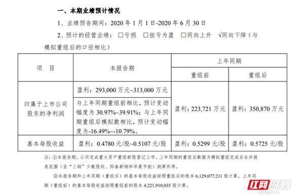 華菱鋼鐵發(fā)布2020年半年度業(yè)績預(yù)告,公告稱,2020年1月1日-2020年6月30日,公司預(yù)計實現(xiàn)歸屬于上市公司股東的凈利潤29.30億元~31.30億元。