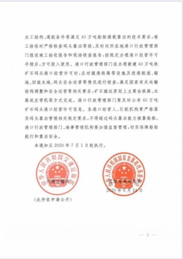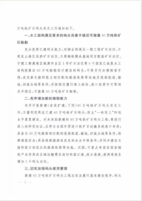 實(shí)際上,根據(jù)下文所附的《通知》全文,我們可以看到除了日照嵐山港區(qū)嵐橋礦石泊位外,還有煙臺(tái)西港區(qū)一期工程礦石泊位、日照鋼鐵精品基地項(xiàng)目配套礦石泊位和寧德三都澳港區(qū)城澳作業(yè)區(qū)1號(hào)礦石泊位等共計(jì)四個(gè)40萬噸級(jí)泊位獲批。