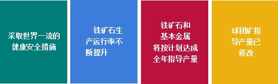 淡水河谷2020年球團(tuán)礦指導(dǎo)產(chǎn)量從3500萬噸至4000萬噸修改為3000萬噸至3500萬噸,主要由于:(1)產(chǎn)量調(diào)整反映了伊塔比拉(Itabira)礦區(qū)球團(tuán)精粉的供應(yīng)情況;(2)大瓦爾任(VargemGrande)球團(tuán)廠復(fù)工延期至2021年;(3)市場需求較為低迷。
