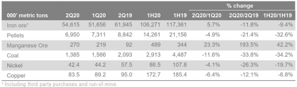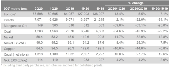 淡水河谷:2020年第二季度產(chǎn)銷量報(bào)告
