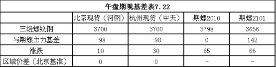 現貨方面:今日國內建筑鋼材市場價格普遍上漲。據了解,北京市場價格漲10元,螺紋主流價格在3700元;天津市場價格部分漲10-30元;杭州市場價格漲30元,螺紋主流價格在3700元;廣州市場暫未出價,昨日午后一線資源主流價格在3910-3920元。