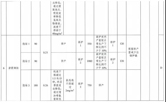 ①每日22時至次日8時,燒結(jié)機(jī)機(jī)速不得超過1. 5米/分鐘,料層厚度適當(dāng)降低,通過提高氧化、吸收效率降低氮氧化物排放,氮氧化物小時均值濃度不得高于40mg/m3; 高爐夜間產(chǎn)量較正常生產(chǎn)下降比例不少于10%;煉鋼工序根據(jù)鐵產(chǎn)量減少出鋼爐數(shù);除保安全生產(chǎn)車輛以外,其余重型貨車禁止運(yùn)輸。