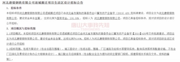項(xiàng)目概況:本招標(biāo)項(xiàng)目河北唐銀鋼鐵有限公司退城搬遷項(xiàng)目已由河北省發(fā)展和改革委員會(huì)以冀發(fā)改產(chǎn)業(yè)備字【2019】430號(hào)文件批準(zhǔn)建設(shè),項(xiàng)目業(yè)主為河北唐銀鋼鐵有限公司,建設(shè)資金來(lái)自自籌,出資比例為100%,招標(biāo)人為河北唐銀鋼鐵有限公司。項(xiàng)目已具備招標(biāo)條件,現(xiàn)對(duì)該項(xiàng)目的生活區(qū)設(shè)計(jì)進(jìn)行公開招標(biāo)