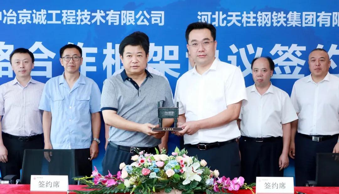 座談會(huì)后,劉巍總經(jīng)理與張波總裁代表雙方簽署了《河北天柱鋼鐵集團(tuán)有限公司城市鋼廠搬遷高爐工程總承包協(xié)議書(shū)》。