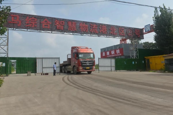 離開招商中心,張明魁及工作人員帶領(lǐng)記者來到了馬路北側(cè)的“金馬綜合智慧物流港北區(qū)2號(hào)”,大門內(nèi)側(cè)的“盈康鋼鐵”的門頭十分清晰,一輛裝載鋼材的車輛正在保安的指揮下緩緩駛出。