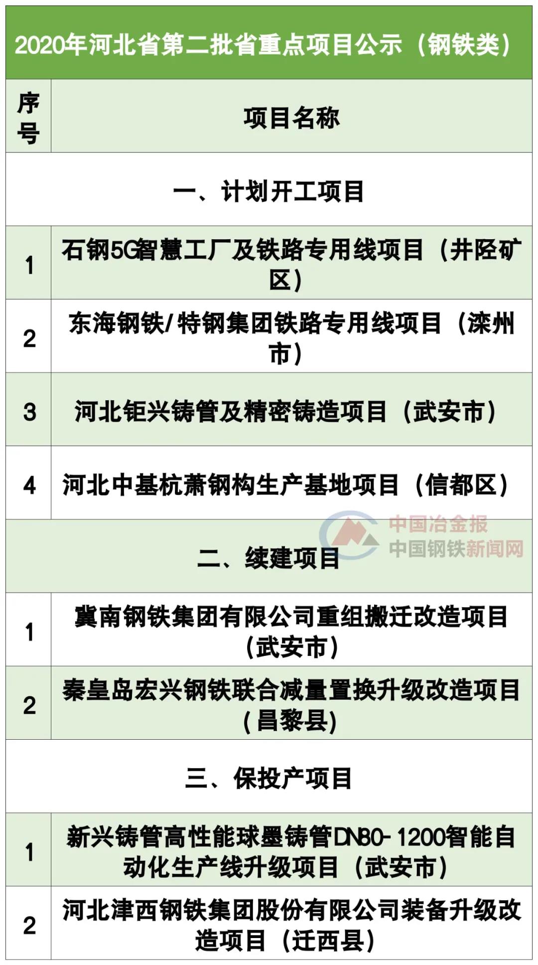 綜合兩個(gè)文件,2020年已有26個(gè)鋼鐵項(xiàng)目成為河北省重點(diǎn)項(xiàng)目,其中包括多個(gè)搬遷改造、減量置換、轉(zhuǎn)型升級(jí)、精品鋼基地建設(shè)項(xiàng)目。