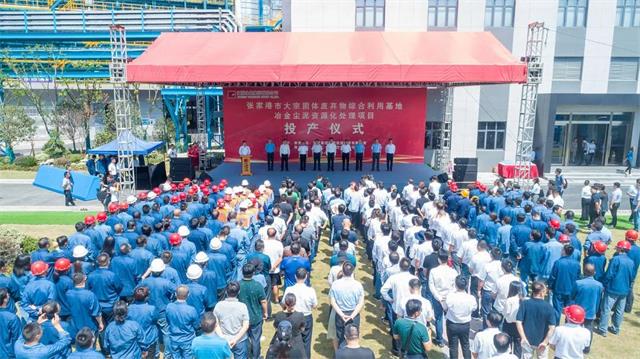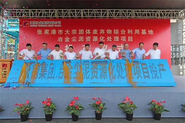 金沙揮灑,鑄就輝煌,主席臺領導共同啟動永鋼集團冶金塵泥資源化處理項目投產。