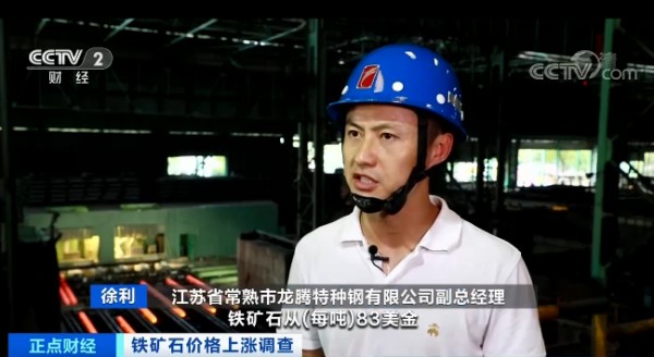 江蘇省常熟市龍騰特種鋼有限公司副總經(jīng)理 徐利:鐵礦石從每噸83美金,上漲到最近的每噸120美金,生產(chǎn)成本巨幅增加,鐵礦石占每噸鋼坯的成本大約從原來(lái)的40%,上漲到最近的50%。