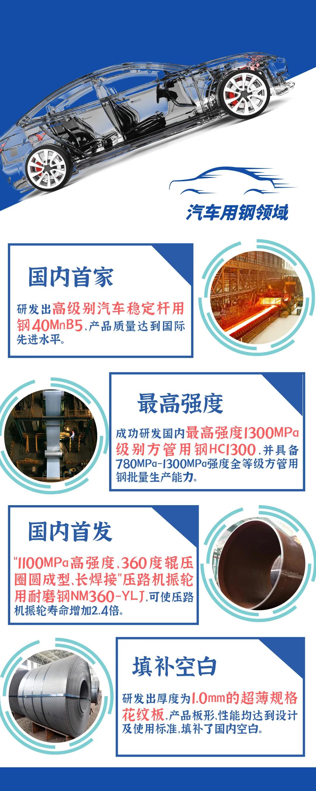 今年以來(lái),河鋼深入推進(jìn)“兩個(gè)結(jié)構(gòu)”再優(yōu)化,加大行業(yè)第一、唯一和替代進(jìn)口產(chǎn)品研發(fā)創(chuàng)新力度,開發(fā)的世界最寬模具鋼4Cr13、世界最高時(shí)速重軌、國(guó)內(nèi)最高強(qiáng)度方管用鋼HC1300等10余個(gè)產(chǎn)品填補(bǔ)了國(guó)內(nèi)空白,在汽車用鋼、家電板、橋梁鋼、鉻鉬鋼等細(xì)分領(lǐng)域打造出更多“單打冠軍”。