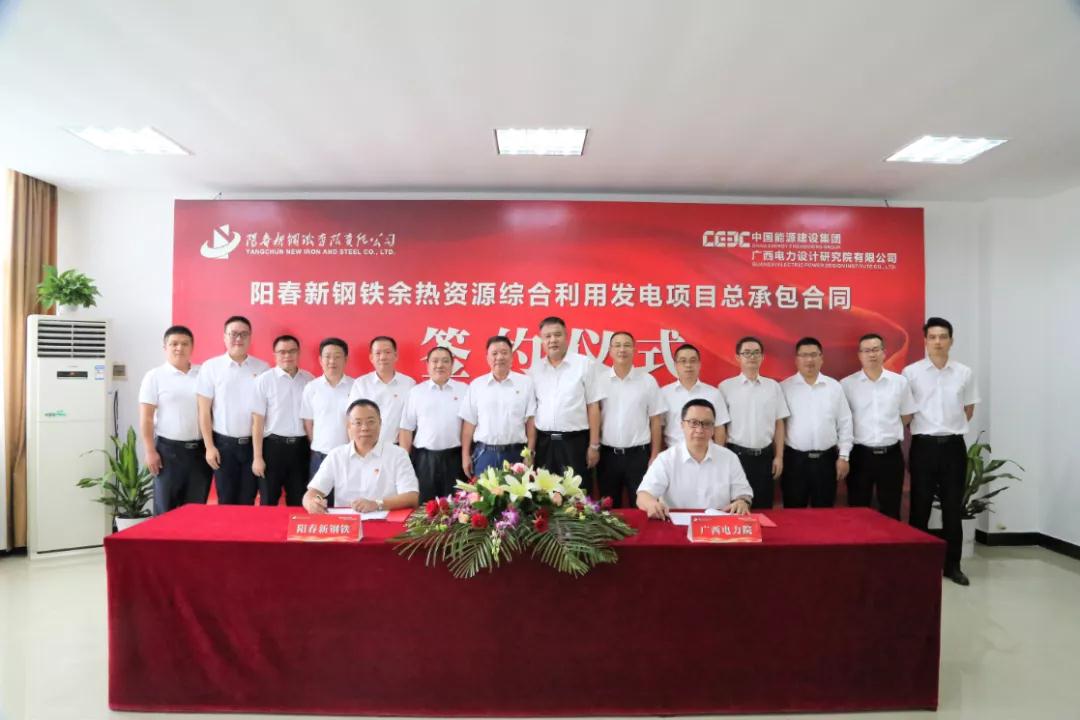 9月7日上午,陽(yáng)春新鋼鐵舉行余熱資源綜合利用發(fā)電項(xiàng)目總承包合同簽約儀式。湘鋼集團(tuán)副總經(jīng)理、陽(yáng)春新鋼鐵黨委書(shū)記、總經(jīng)理左都偉、副總經(jīng)理李延;中國(guó)能源建設(shè)集團(tuán)廣西電力設(shè)計(jì)研究院有限公司黨委副書(shū)記、總經(jīng)理蒙東俊、副總經(jīng)理韋斌,以及雙方有關(guān)人員出席簽約儀式。