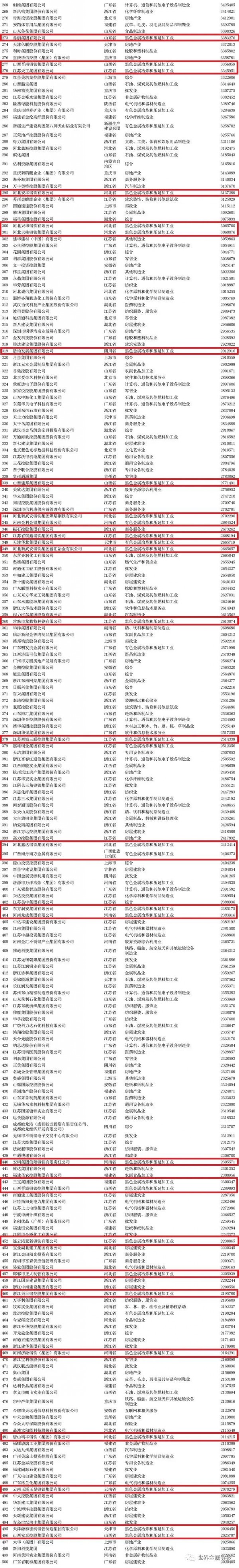 同時(shí),全國工商聯(lián)發(fā)布“2020中國制造業(yè)民營企業(yè)500強(qiáng)”榜單,榜單鋼鐵行業(yè)中青山控股集團(tuán)、江蘇沙鋼集團(tuán)、建龍重工集團(tuán)同樣列前三甲,分別以營業(yè)收入2626億元、2521億元、1520億元排第8、9、15位;還有中天鋼鐵集團(tuán)、敬業(yè)集團(tuán)、河北津西鋼鐵集團(tuán)、日照鋼鐵控股集團(tuán)、河北新華聯(lián)合冶金控股集團(tuán)、天津榮程祥泰投資控股集團(tuán)、河北普陽鋼鐵有限公司、江西方大鋼鐵集團(tuán)、江蘇永鋼集團(tuán)、金鼎鋼鐵集團(tuán)、新天鋼鋼鐵集團(tuán)、新長江實(shí)業(yè)集團(tuán)、裕華鋼鐵有限公司、明芳鋼鐵有限公司、河北新武安鋼鐵集團(tuán)、四川川威集團(tuán)、遼寧嘉晨控股集團(tuán)、福建大東海實(shí)業(yè)集團(tuán)、唐山港陸鋼鐵有限公司、湖南博長控股集團(tuán)、河北新金鋼鐵有限公司、河北文豐鋼鐵有限公司等22家鋼企上榜前100強(qiáng),具體情況如下圖。