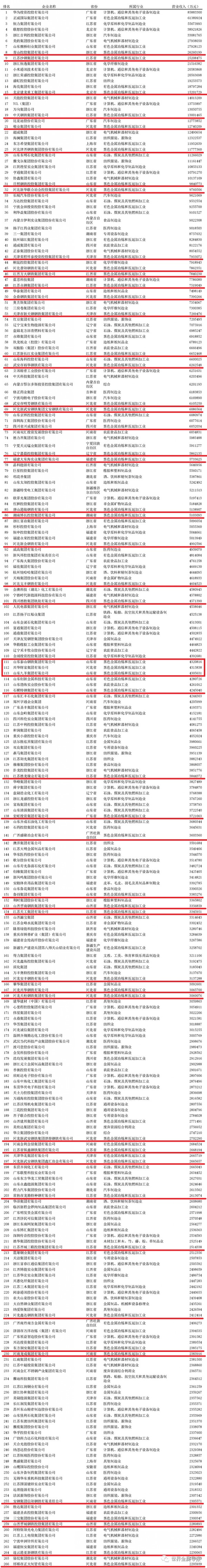 2020中國制造業(yè)民企500強(qiáng)榜單