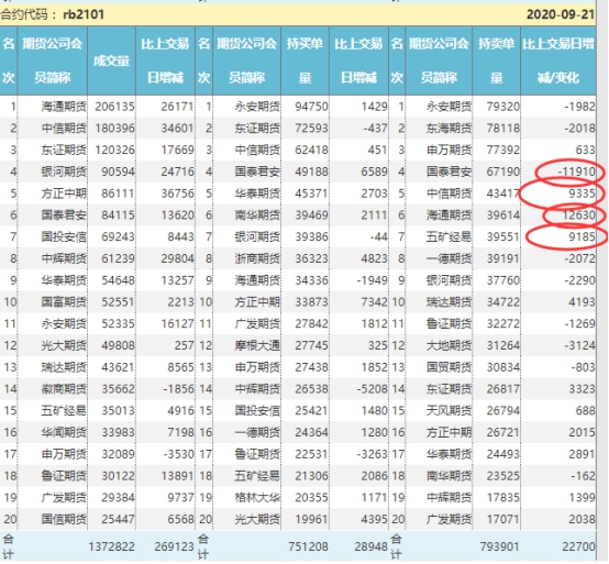 期螺持倉報告顯示:今日持倉報告亮點(diǎn)很有特點(diǎn),基本還是空頭榜動靜比較大,原前三甲的國泰減空1.2萬手退出前三;中信五礦雙雙增空近萬;海通增空1.3萬手