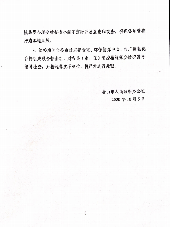 唐山市人民政府辦公室發(fā)布關(guān)于進一步加嚴大氣污染防治管控措施的通知