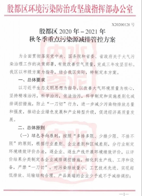 日前,河南省安陽(yáng)市龍安區(qū)發(fā)布《2020-2021秋冬季重點(diǎn)污染源減排調(diào)控方案》,要求: