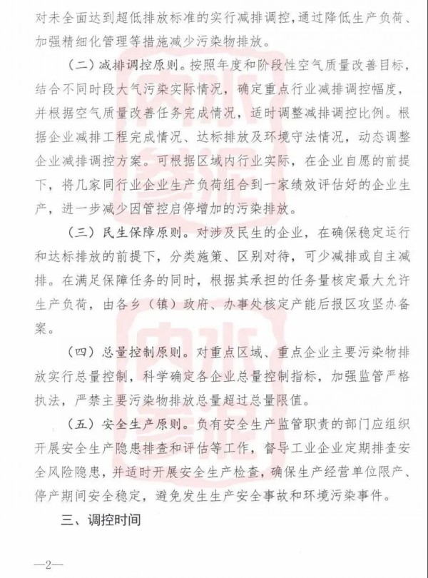 本次調(diào)控方案執(zhí)行時(shí)間為2020年10月1日至2021年3月31日。如遇重污染天氣預(yù)警,要嚴(yán)格按照應(yīng)急響應(yīng)方案執(zhí)行。
