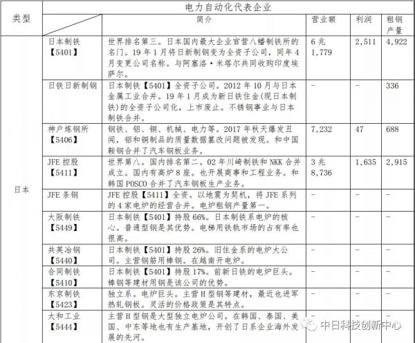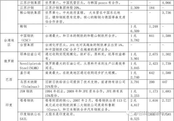 注:(1)數(shù)據(jù)為2019年度,(2)營業(yè)額和利潤的單位為億日元,粗鋼產(chǎn)量的單位為萬噸