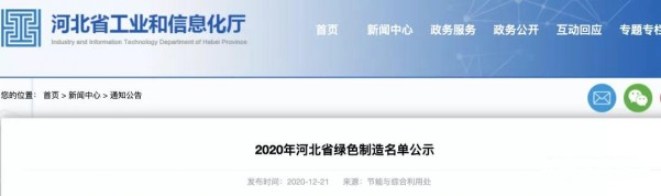 根據(jù)河北省綠色制造體系建設(shè)有關(guān)規(guī)定,省工業(yè)和信息化廳擬將列入2020年河北省綠色制造名單的綠色工廠、綠色園區(qū)、綠色供應(yīng)鏈管理示范企業(yè)予以公示(見附件)。