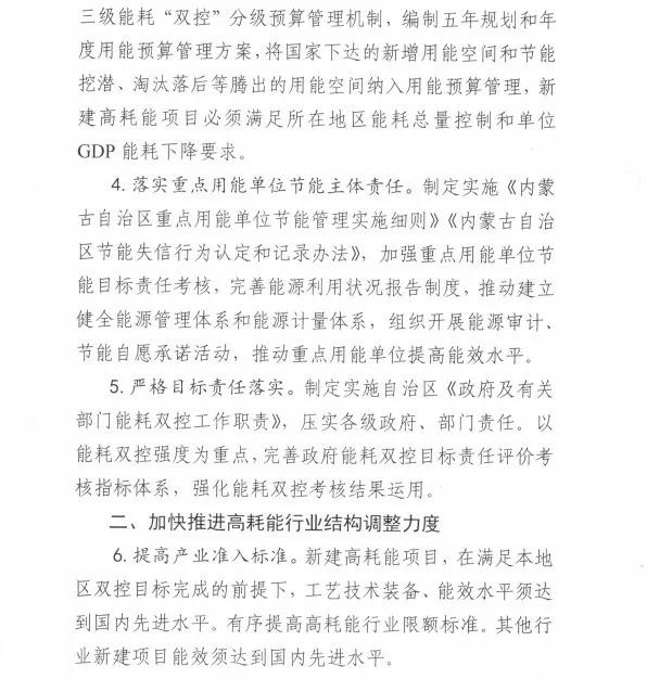 加快重點(diǎn)高耗能行業(yè)節(jié)能技術(shù)改造步伐。2021年~2023年重點(diǎn)對(duì)火電、鋼鐵、電解鋁、鐵合金、電石、銅鉛鋅、化工、建材等高耗能行業(yè)重點(diǎn)用能企業(yè)實(shí)施改造,力爭(zhēng)改造后單位產(chǎn)品能耗達(dá)到國(guó)家能耗限額標(biāo)準(zhǔn)先進(jìn)值。全面推進(jìn)煤電機(jī)組綜合節(jié)能改造。各盟市至少按照40%、40%、20%的進(jìn)度完成全部改造任務(wù)。加大對(duì)節(jié)能技改項(xiàng)目支持力度。