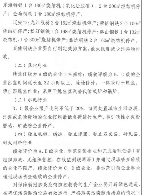 1月31日,唐山市大氣污染防治工作領(lǐng)導(dǎo)小組辦公室發(fā)布《關(guān)于進一步加嚴源頭減排措施的緊急通知》。按照該通知,自1月31日14時開始,唐山減排量增至50%,燒結(jié)機全面停限產(chǎn)。