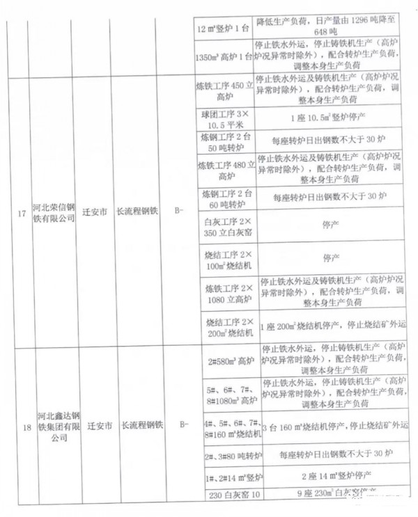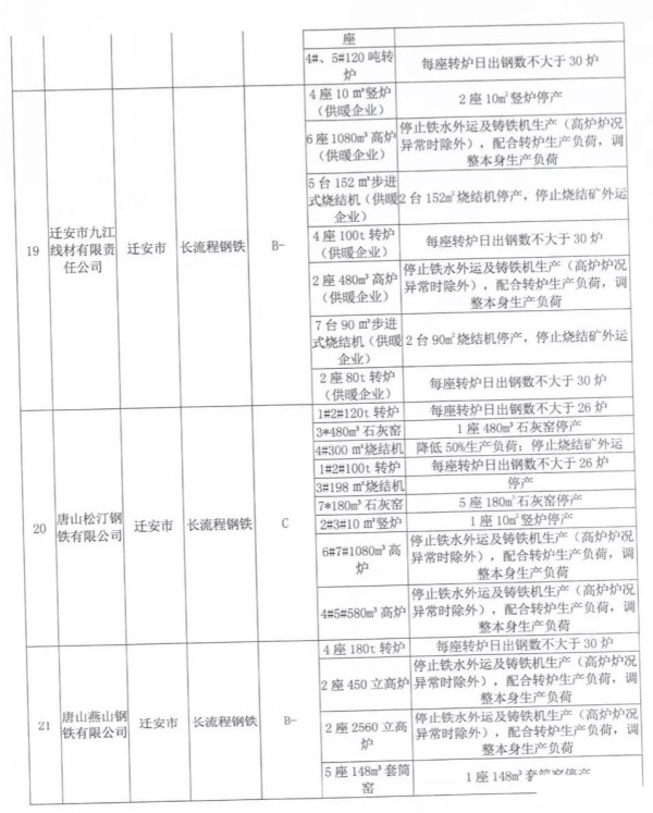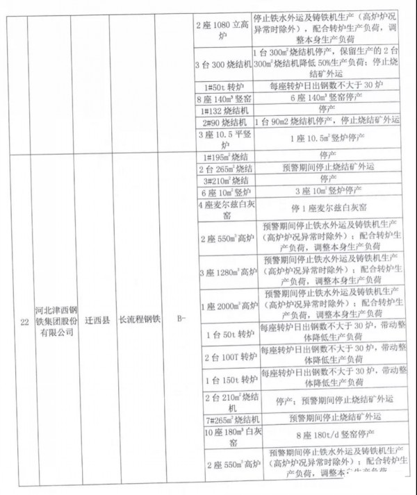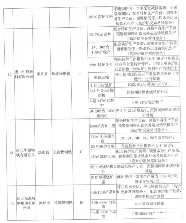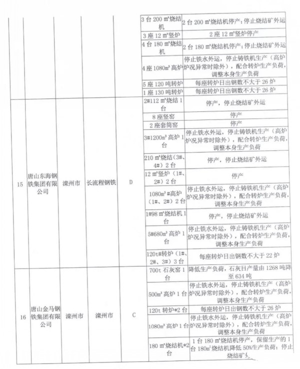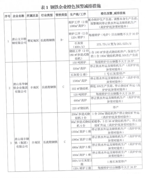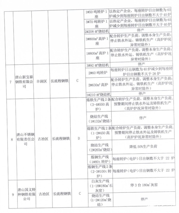 唐山市啟動最新一輪鋼廠停限產(chǎn)方案