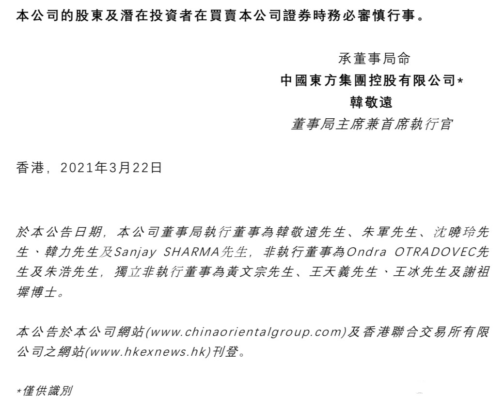 核心提示:中國東方集團(tuán)(以下簡稱集團(tuán))發(fā)布公告,為遵守由唐山市大氣污染防治工作領(lǐng)導(dǎo)小組辦公室發(fā)布日期為2021年3月19日的《關(guān)于報(bào)送鋼