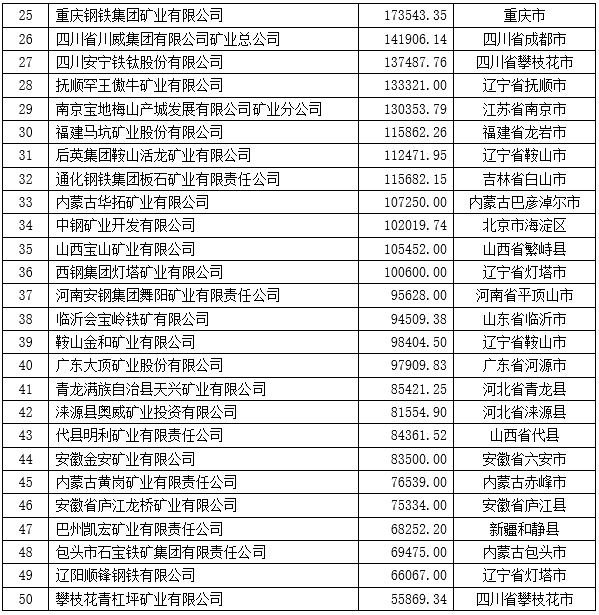 附件:2020年中國冶金礦山企業(yè)50強(qiáng)名單
