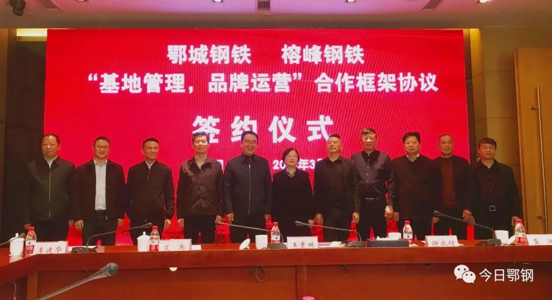3月25日,鄂城鋼鐵與十堰榕峰鋼鐵和十堰市政府相關(guān)領(lǐng)導(dǎo)齊聚十堰,簽訂“基地管理+品牌運營”合作框架協(xié)議。鄂城鋼鐵黨委書記、董事長王素琳,高級副總裁謝成付,副總裁艾兵;榕峰鋼鐵總經(jīng)理陳光榮,副總經(jīng)理施禮順等出席簽約儀式。