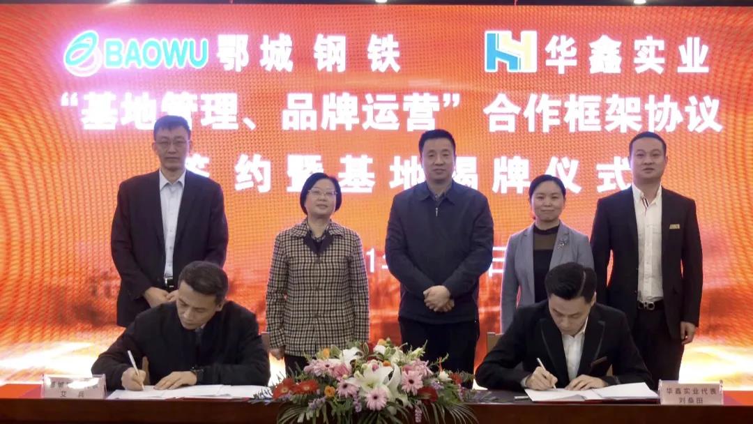 2021年4月8日,鄂城鋼鐵與大冶市華鑫實業(yè)有限公司(簡稱大冶華鑫)及大冶市政府相關領導齊聚大冶,舉行“基地管理+品牌運營”框架協(xié)議簽約暨基地揭牌儀式。