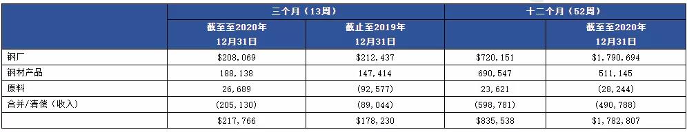 2020年第四季度,紐柯鋼鐵綜合凈收益為3.988億美元,即稀釋后每股收益為1.30美元。2020全年,紐柯的綜合凈收益為7.215億美元,即稀釋后每股收益為2.36美元,而去年同期為12.7億美元,即稀釋后每股收益為4.14美元。